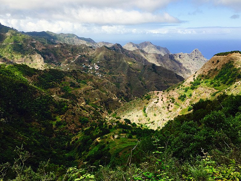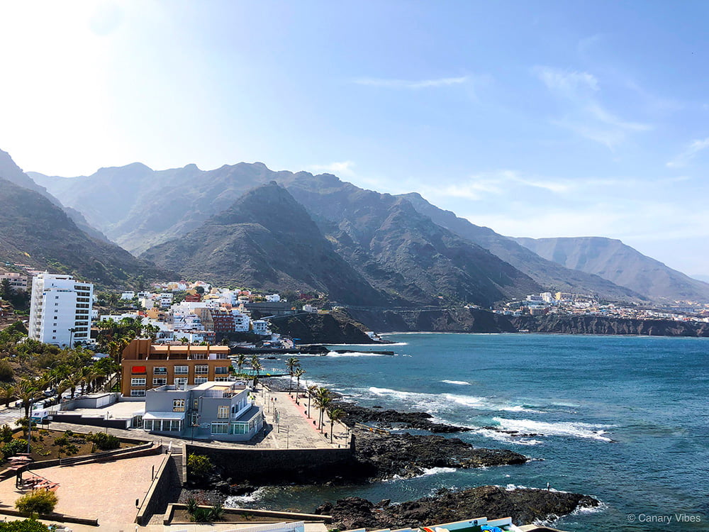 Die Hauptstraße führt an der Kirche vorbei bis an das Ende des Dorfes. Dort triffst du auf die wilde Küste und hast eine beeindruckende Sicht auf die spitzen Berge des Anaga-Gebirges, die bis in den Atlantischen Ozean reichen. Fast so wie auf Hawaii.