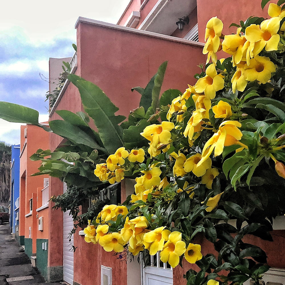Punta del Hidalgo empfängt dich hoch oben auf einer Steilküste, wo du weit über den Atlantik, der in der Sonne blau glitzert, blicken kannst. Auf der anderen Seite geht es steil bergauf. Am Hang des Anaga-Gebirges haben sich bunte Häuser mit ihren üppigen Bepflanzungen perfekt in die Landschaft eingefügt. Der Eingang von Punta del Hidalgo kann kaum schöner sein.