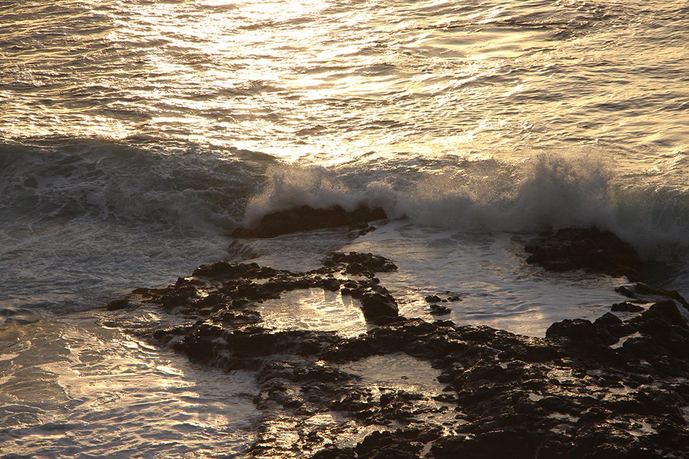 Die Uferzone vor der Avenida Marítima ist eine große Felsplattform, die bei Ebbe zum Vorschein kommt. Durch diese Plattform aus Lavagestein, schaffen es große Wellen nicht bis an das Ufer. So kannst von der Avenida aus in unmittelbarer Nähe das Heranrollen der großen Wellen beobachten.
