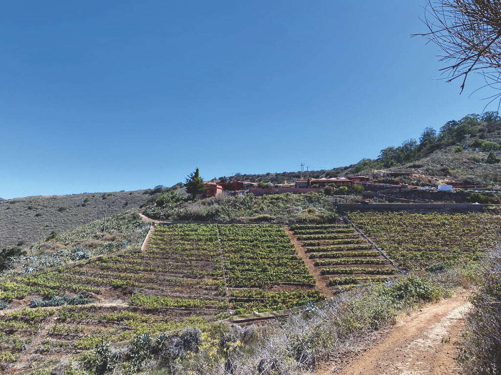 Nach der Überquerung der Hauptstraße führt dich die Route in ein landwirtschaftliches Gebiet. Dort, wo überwiegend Kartoffeln und Wein angebaut werden, kannst du traditionelle Landwirtschaft beobachten.