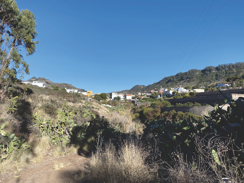 Der Weg führt dich zurück Richtung Tegueste. Nachdem du Tegueste erneut durchquert hast, kommst du zur Schlucht (Barranco) Agua de Dios. Dort wurden Höhlen und Überreste der Ureinwohner der Kanaren (Guanches) gefunden.