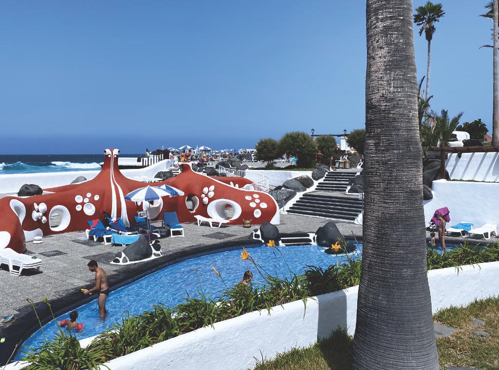 Später wurde einem Meeresschwimmbecken ein Wasserfall hinzugefügt sowie tropische Pflanzen und schattenspendende Palmen angepflanzt, um sich dem Stil des César Manriques anzunähern.