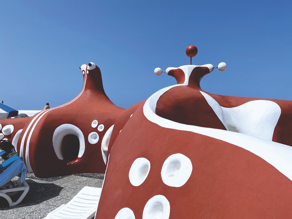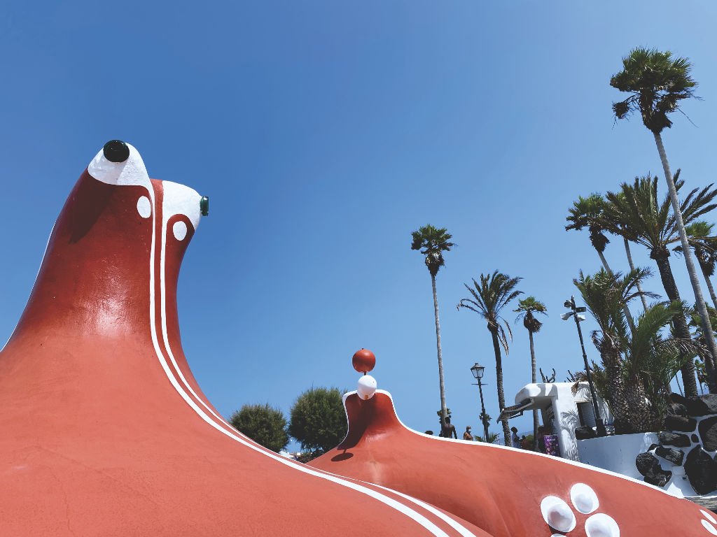 An dem Schwimmbecken befindet sich auch das Kunstobjekt La Jibia (Der Tintenfisch) welches den Kindern als Spielobjekt dient.