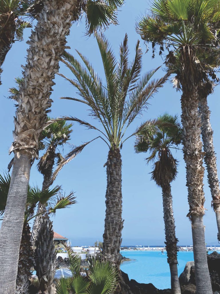 Verschiedene Sonneninseln und Nischen laden zwischen tropischen Pflanzen, schattenspendenden Palmen und Lavagestein zum Entspannen ein.