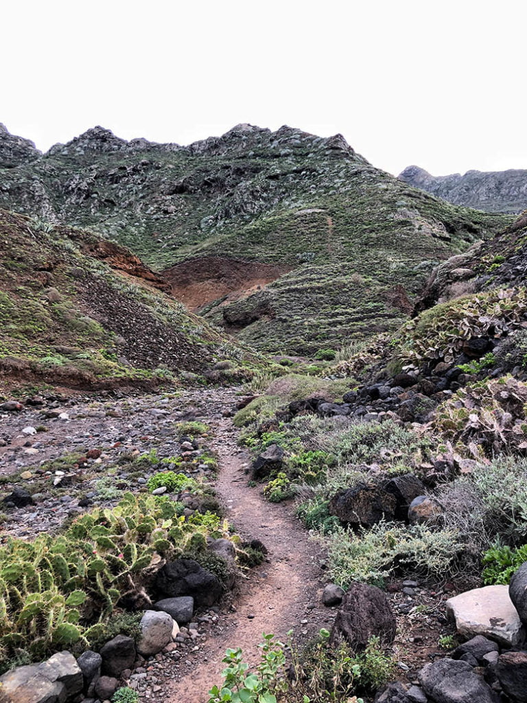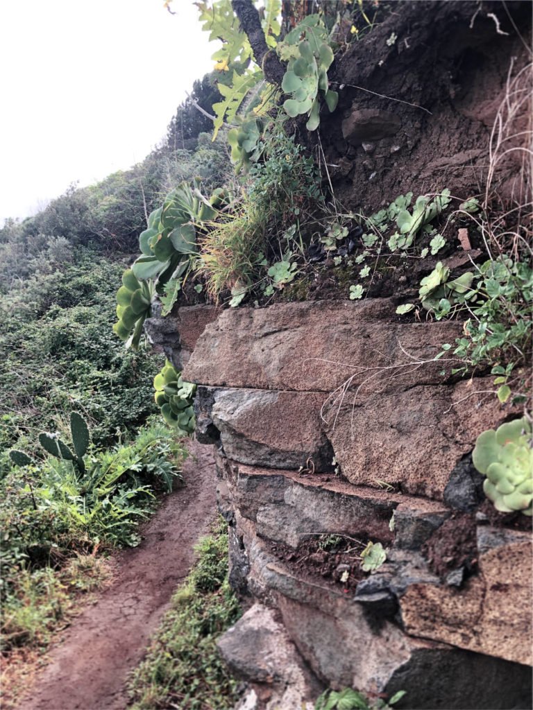 Der Weg verläuft zunächst durch das kanarische Dorf Tegueste, vorbei an Obst- und Gemüsegärten und den ein oder anderen bellenden Hofhund. Am Rande des Dorfes schlängelt sich ein Pfad aus Stufen den Berg hinauf, die einst in den Felsen geschlagen wurden.